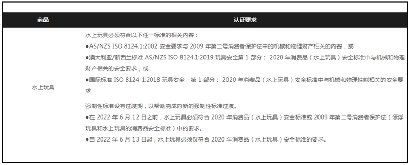 过渡期过后,供应商必须满足《消费品(水上玩具)安全标准2020》的要求。