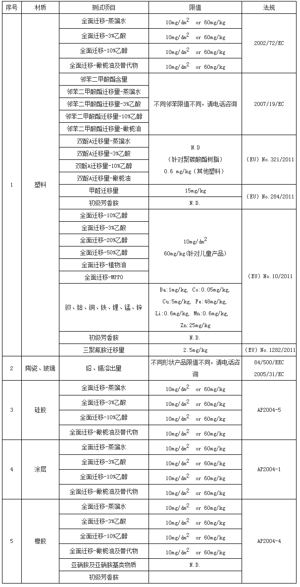 法令1935/2004/EC 列明了与食品接触的产品/物质必须符合以下的条件:符合良好制造规范(Good Manufacturing Practice ,GMP),当产品接触食品时,不可: