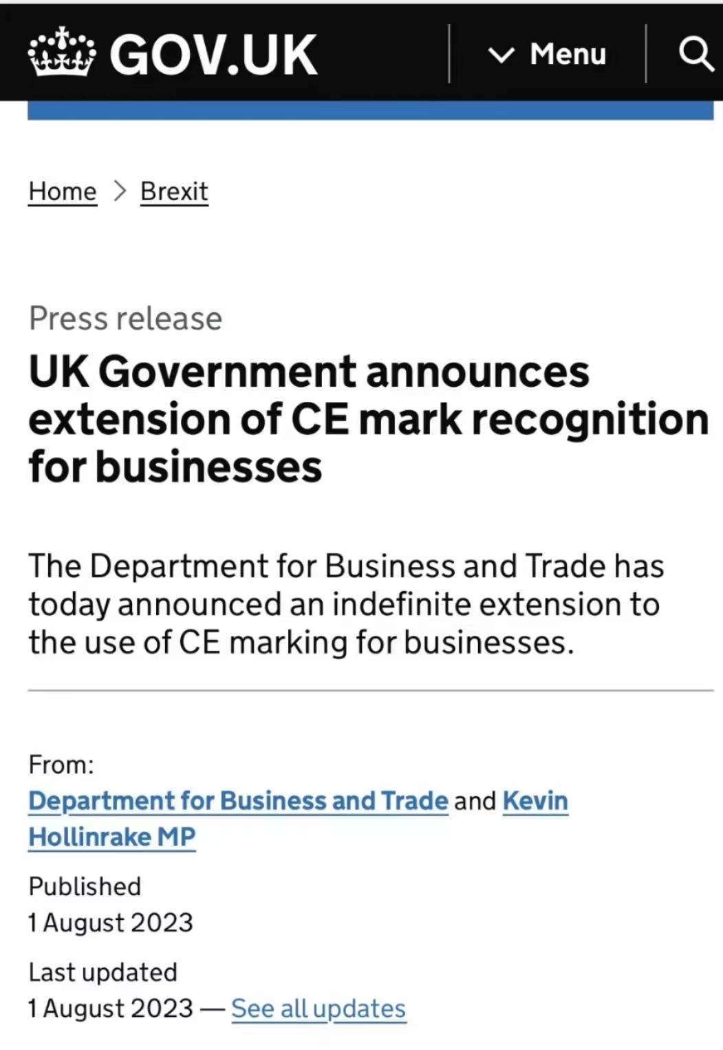 最新消息:为提升市场信心,加快经济复苏,英国无限期延长CE标识认可,同时保留UKCA标识认可方式。...